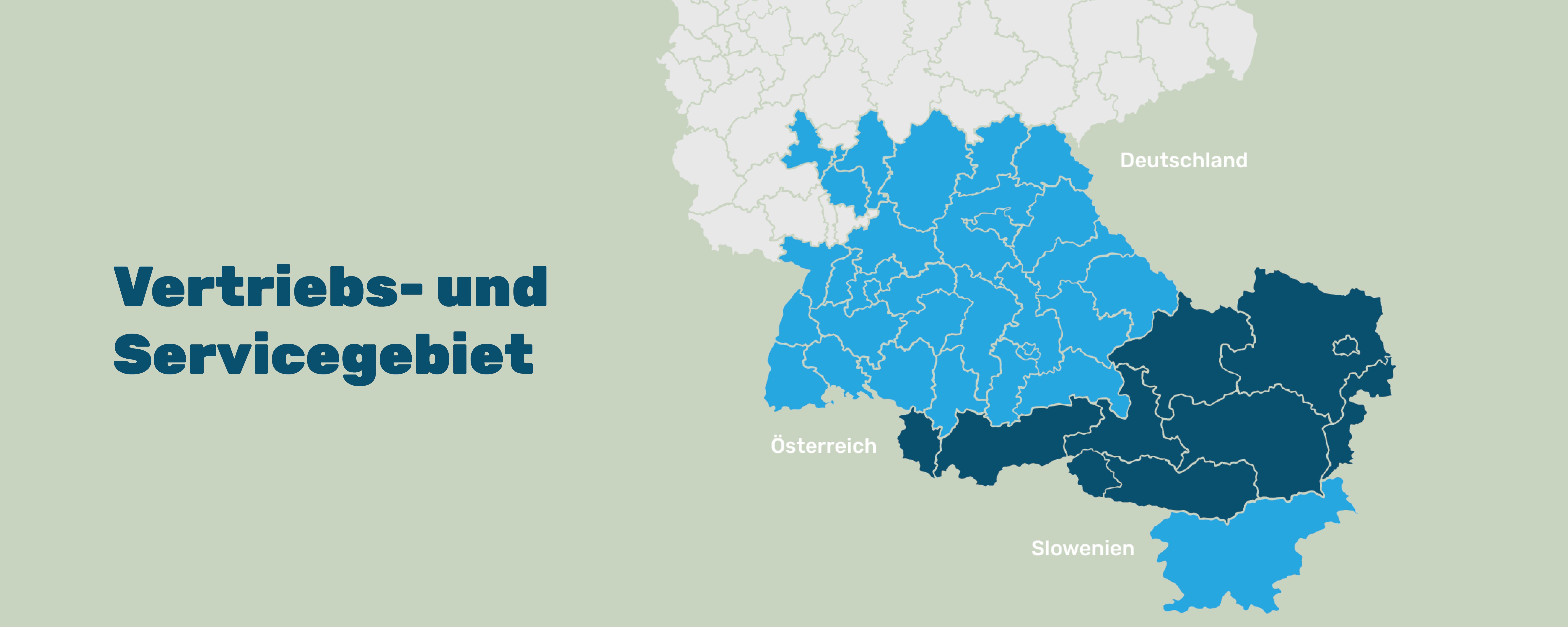 Unser Service- und Vertriebsgebiet umfasst Österreich, Süddeutschland und Slowenien: